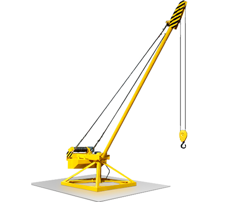 Для удешевления транспортных расходов под заказ в качестве противовеса может поставляться металлический каркас в виде пространственного конструкции или в виде ящика, в который на месте эксплуатации укладываю груз для противовеса. Грузовая лебёдка поставляется с намотанным канатом, подключенным кабелем совместно с пультом, силовым ящиком 380 В. Кран комплектуется ограничителем высоты подъёма крюка.Стрела крана разборная, длина элемента стрелы не более 3,5 м.