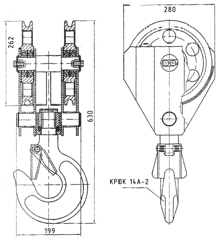 Двухблочная крюковая подвеска 6,3 тн (диаметр каната 13,5 мм)