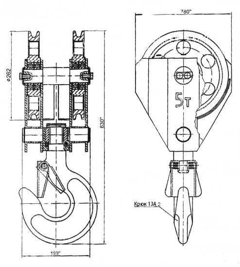 Двухблочная крюковая подвеска на 5 тн (диаметр каната 13,5 мм)