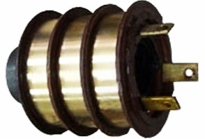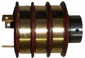 Блок представляет собой цилиндрическое основание, на котором установлены латунные кольца. Во время вращения корпуса коллектора к этим кольцам прижимаются щетки, через которые подается напряжение.