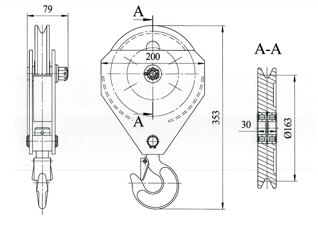 - Опоры крюка и подъемного блока выполнены на шариковых подшипниках. Это обеспечивает легкое вращение подвижного механизма.