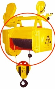 Механизм подъема тали состоит из мотор-барабана, шкафа электроаппаратуры, двуступенчатого редуктора и корпуса, который соединяет все узлы механизма подъема.