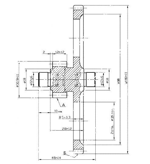 Модель 102с-29 отличается от 102-29 количеством зубьев. Скорость передвижения шестерни равна 32 м/мин. Деталь состоит из двух венцов с 13 и 56 зубьями. Их диаметр равен 26 и 112 мм соответственно.